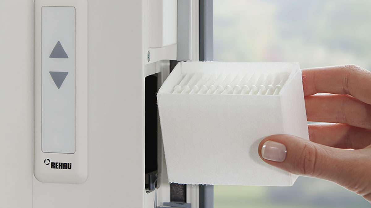 Der in den Fensterrahmen integrierte Grobstaubfilter der Klasse G3 lässt den Großteil an Insekten, Sand, Blütenstaub, Sporen und Pollen zuverlässig draußen.*