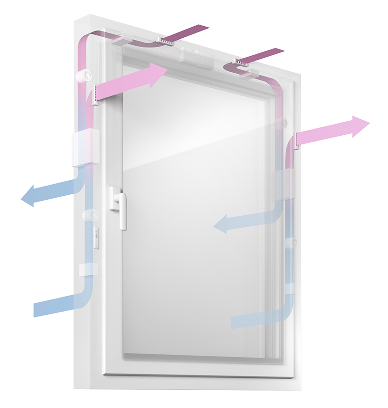 Das automatisierte Lüftungssystem arbeitet mit einem Wärmetauscher, der für temperierte Frischluft sorgt. Der warmen, verbrauchten Innenluft wird die Wärme entzogen, welche die kalte Frischluft aufwärmt. So sparen Sie Heizkosten und wertvolle Ressourcen.