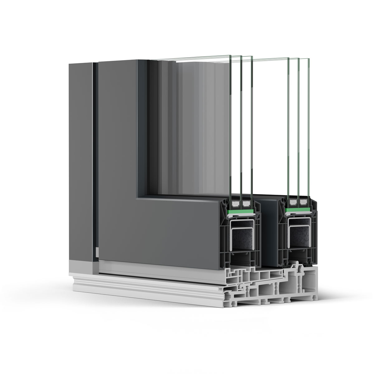 Ansichtsbreiten Zarge/Flügel: 179 mm (103 mm mit Panoramaflügel)